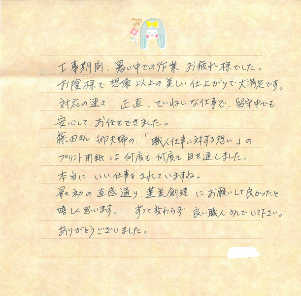 お客様からとても嬉しいお手紙まで頂きました。今後とも精進して参ります!